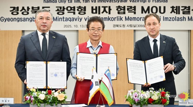 뉴스펀치 김길룡 기자 | 경상북도는 13일 도청 사림실에서 이철우 경상북도지사, 우즈베키스탄 베흐조드 무사예프 대외 노동청장, 타히르존 사파로브 대통령실 담당관 등이 참석한 가운데, 우즈베키스탄 대외 노동청 및 고등교육과학혁신부와 ‘경상북도 광역형 비자 업무협약’을 체결했다.