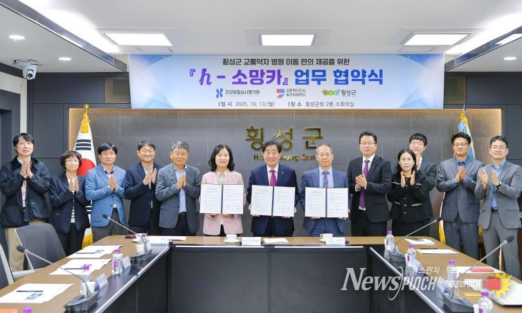 뉴스펀치 김길룡 기자 | 강원혁신도시발전지원센터(센터)와 건강보험심사평가원(심평원), 횡성군은 10월 13일 횡성군청에서 의료 사각지역 교통 취약계층을 위한 병원이동용 차량 지원 사업 업무협약을 체결했다.