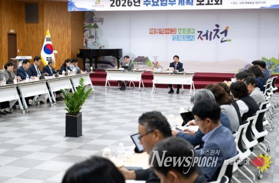 뉴스펀치 김길룡 기자 | 제천시는 지난 13일 시청 청풍호실에서 김창규 시장 주재로 국장 및 직속기관장, 부서장이 참석한 가운데 2026년 주요업무계획 보고회를 개최했다.