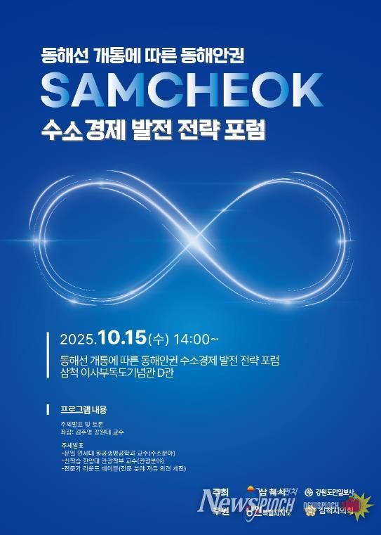 이번 포럼은 ‘삼척-포항 동해선, 수소경제 벨트의 핵심축이 되다’를 주제로 오는 15일 오후 2시 삼척 이사부독도기념관 D관에서 열린다.