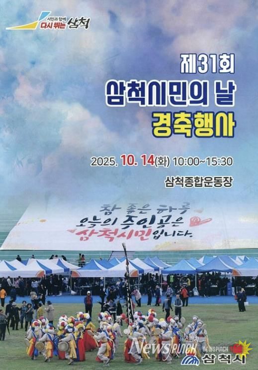 뉴스펀치 김길룡 기자 | 삼척시민의 단결과 화합, 애향심과 자긍심을 고취하기 위한 제31회 삼척시민의 날 기념 경축 행사가 오는 10월 14일 오전 10시 삼척종합운동장에서 열린다.