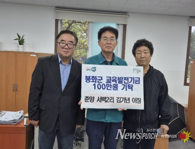 뉴스펀치 김길룡 기자 | 춘양면 서벽2리 김기년 이장은 지역 인재 육성과 교육환경 개선을 위한 뜻을 모아 지난 13일 봉화군 교육발전기금으로 100만 원을 기탁했다.