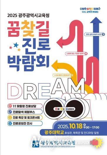 뉴스펀치 김길룡 기자 | 광주시교육청이 오는 18일 광주대학교 호심관, 체육관, 잔디마당 일원에서 ‘2025 광주 꿈찾길 진로박람회’를 개최한다.