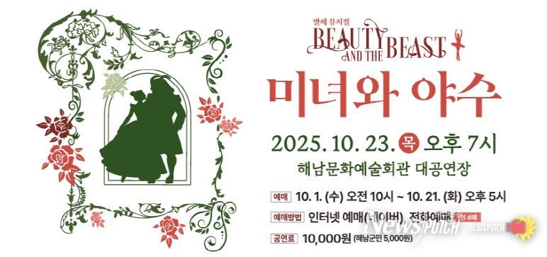 뉴스펀치 김길룡 기자 | 해남군은 오는 10월 23일 오후 7시 해남문화예술회관 대공연장에서 발레뮤지컬 ‘미녀와 야수’공연을 선보인다.