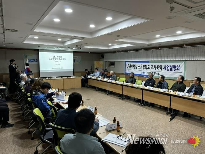뉴스펀치 김길룡 기자 | 양구군은 13일 오전 10시 양구읍 대회의실에서 ‘양구비행장 소음영향도 조사 용역’ 사업설명회를 개최했다. 이번 설명회는 육군 제3군단이 주관하고 관계기관 및 지역주민이 참석한 가운데, 소음피해 실태를 파악하고 향후 보상기준 마련 방향을 공유하기 위해 마련됐다.