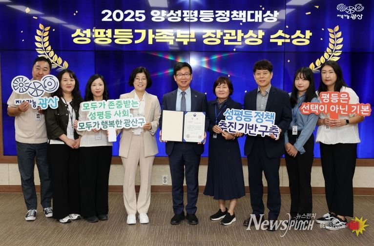 뉴스펀치 김길룡 기자 | 광주 광산구는 여성신문과 전국여성지방의원네트워크가 공동 주최하고 (사)지방자치발전소가 주관하는 ‘2025 양성평등정책대상’에서 성평등가족부 장관상을 받았다고 13일 밝혔다.