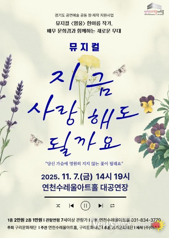 뉴스펀치 탁상훈 기자 | 연천군시설관리공단(연천수레울아트홀)은 2025 경기도 공연예술 공동 창·제작 지원 시범사업에 선정되어, (재)구리문화재단 및 ㈜아츠온과 함께 창작 뮤지컬 〈지금 사랑해도 될까요〉를 공동 제작하여 선보인다.