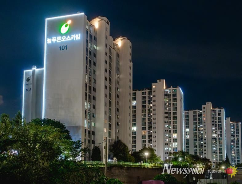 뉴스펀치 탁상훈 기자 | 오산시 관내 아파트(공동주택) 단지들이 오색찬란한 빛으로 물들고 있다.
