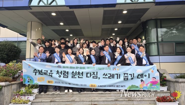 뉴스펀치 김길룡 기자 | 경기도수원교육지원청은 10월 13일, 매월 추진 중인 청렴 캠페인의 일환으로 전 부서가 함께하는 ‘청렴 실천 다짐 쓰레기 줍깅 데이’를 실시했다.