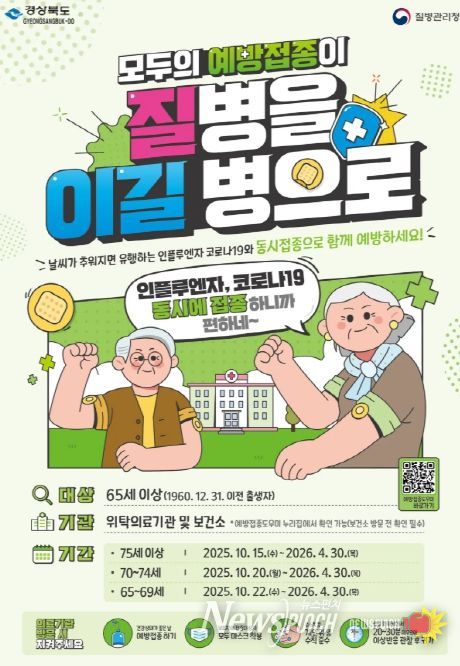 뉴스펀치 김길룡 기자 | 경상북도는 65세 이상 어르신과 면역저하자 등 코로나19 고위험군을 대상으로 2025-2026절기 코로나19 예방접종을 15일부터 내년 4월 30일까지 실시한다.