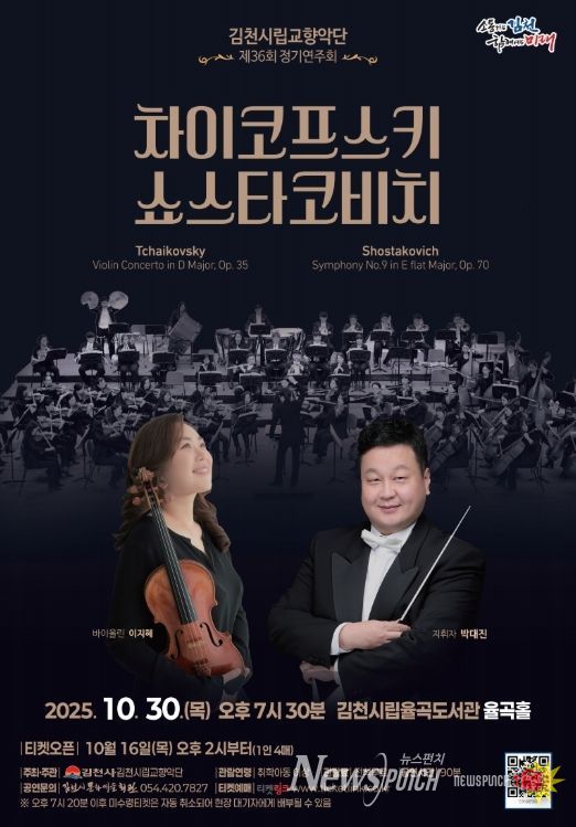 뉴스펀치 김길룡 기자 | 김천시문화예술회관은 10월 30일 목요일 오후 7시 30분에 시립율곡도서관 2층 율곡홀에서 시립교향악단 제36회 정기연주회를 개최한다.