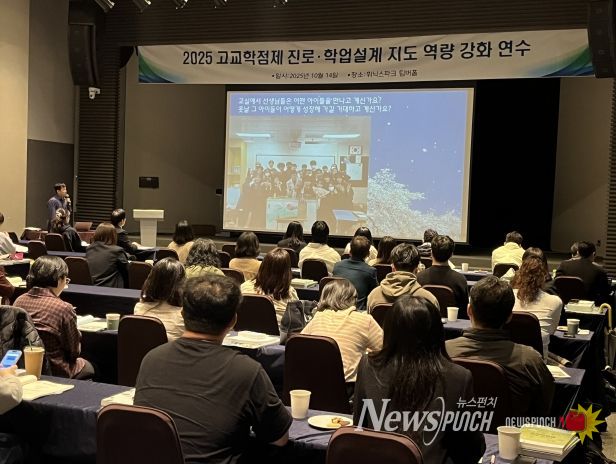 뉴스펀치 김길룡 기자 | 강원특별자치도교육청은 10월 14일 평창 휘닉스호텔에서 도내 고등학교 교원을 대상으로 ‘2025 고교학점제 진로·학업 설계 지도 역량 강화 연수’를 실시했다.