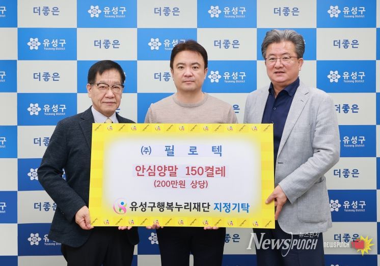 뉴스펀치 김길룡 기자 | 대전 유성구는 14일 ㈜필로텍(대표 이영민)이 유성구행복누리재단에 ‘안심양말’ 150켤레(총 200만 원 상당)를 기탁했다고 밝혔다.