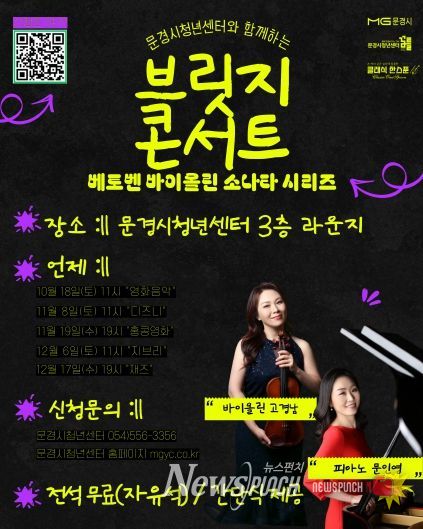 뉴스펀치 김길룡 기자 | 문경시청년센터는 오는 10월부터 12월까지 문경시청년센터 3층 라운지에서 클래식을 주제로 한‘브릿지 콘서트’를 연다.