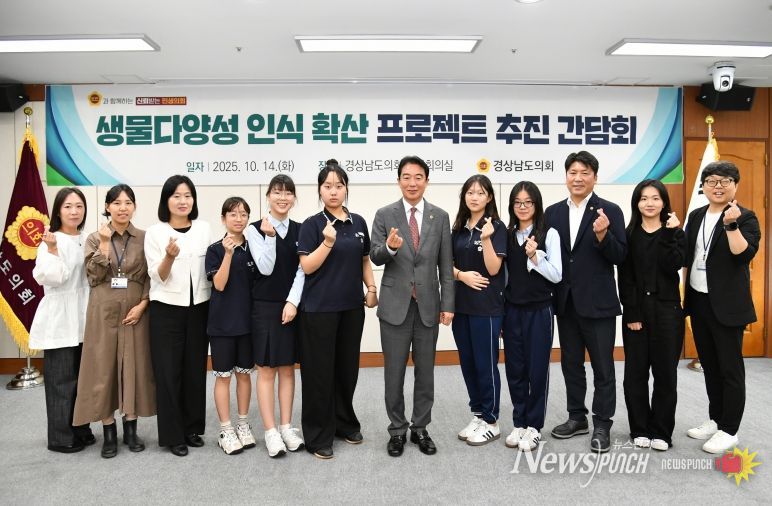 뉴스펀치 김길룡 기자 | 경상남도의회 기획행정위원회 박동철 의원(국민의힘, 창원14)은 14일 도의회 의정회의실에서 청소년들이 제시한 ‘생물다양성 인식 확산 프로젝트’ 관련 간담회를 개최했다.