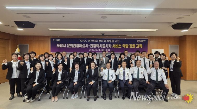 뉴스펀치 김길룡 기자 | 포항시는 14일, 2025 APEC 정상회의 방문객 맞이를 앞두고 관광종사자들의 결의를 다지고 서비스 역량을 강화하기 위한 친절 서비스 교육을 실시했다고 밝혔다.