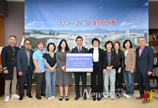 뉴스펀치 김길룡 기자 | (사)시니어벤처협회 울산지회와 울산북구가족센터가 10월 14일 오전 10시 중구청 구청장실에서 북정경로식당에 500만 원 상당의 이웃돕기 백미 10kg 100포를 전달했다.
