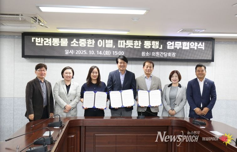 뉴스펀치 김길룡 기자 | 인천 서구는 14일 관내 동물장묘업체와 함께 ‘반려동물 소중한 이별, 따뜻한 동행’을 주제로 반려동물 장례문화 지원 업무협약을 체결했다. 이번 협약은 서구의회 의원연구단체인 서구반려동물정책연구회가 공동발의해 전국 최초로 제정한 ‘인천광역시 서구 반려동물 장례문화 지원 조례’를 근거로 진행됐다는 점에서 의미가 크다.