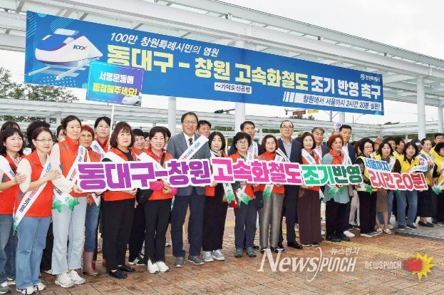 뉴스펀치 김길룡 기자 | 창원특례시는 14일 창원중앙역에서 KTX 이용객을 대상으로 ‘동대구-창원 고속화철도’의 제5차 국가철도망 계획 반영을 촉구하는 캠페인을 실시했다.