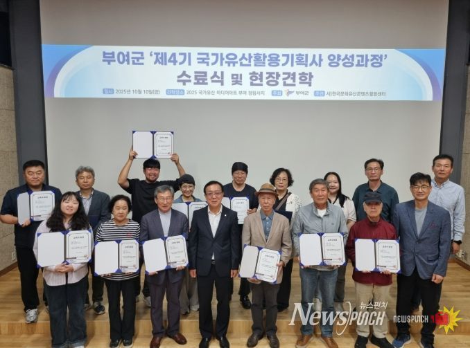 뉴스펀치 김길룡 기자 | 부여군은 지난 10일 정림사지박물관에서 ‘제4기 국가유산활용기획사 양성 과정’의 수료식을 개최했다고 밝혔다.