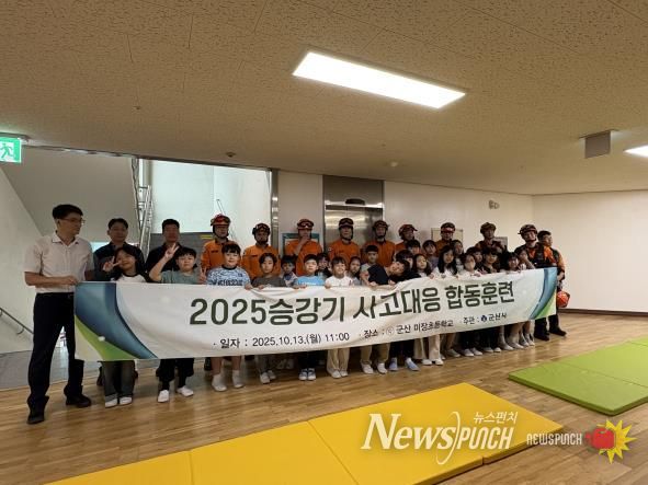 뉴스펀치 정홍균 기자 | 군산시는 한국승강기안전공단, 군산소방서, 관리업체가 함께 참여한 가운데 미장초등학교 학생들 30여 명을 대상으로‘2025년도 승강기 합동훈련’을 실시했다.