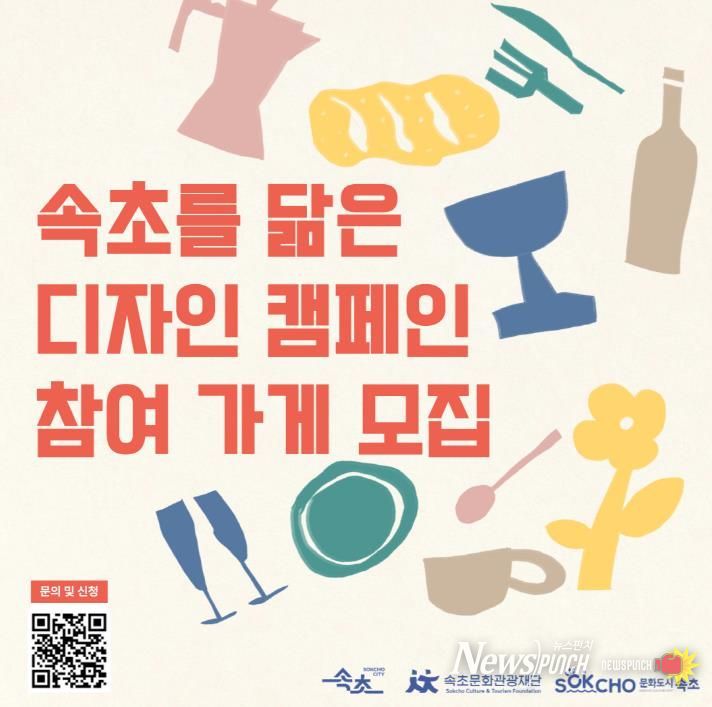 뉴스펀치 김길룡 기자 | (재)속초문화관광재단은 음식문화도시 조성 사업의 일환으로 ‘속초를 닮은 디자인 캠페인’에 참여할 지역 식당 20개소를 오는 19일 17시까지 모집한다.