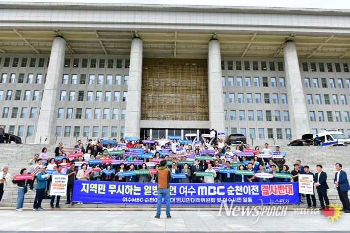 뉴스펀치 김길룡 기자 | 여수시의회는 10월 14일 MBC본사와 국회에 항의 방문하며 여수MBC 순천 이전 철회를 강력히 촉구했다.