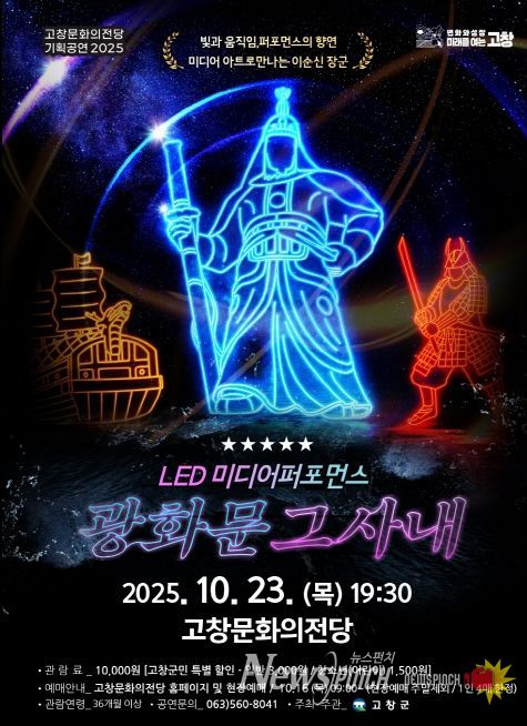 뉴스펀치 정홍균 기자 | 고창군문화의전당이 오는 23일 저녁 7시30분 ‘LED 미디어 퍼포먼스-광화문, 그 사내’ 공연을 무대에 올린다.