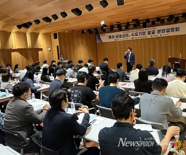 뉴스펀치 조평훈 기자 | 대구광역시는 대구도시개발공사와 함께 10월 15일 오후, iM뱅크 제2본점에서 ‘율하도시첨단산업단지’와 ‘금호워터폴리스’의 강점과 투자 인센티브를 알리는 ‘수요기업 발굴 분양설명회’를 개최했다.