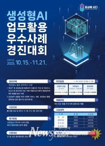 뉴스펀치 김길룡 기자 | 충북도가 행정업무 혁신을 위해 생성형 인공지능(AI)을 활용한 우수사례를 찾는다. 도는 ‘생성형 인공지능 업무활용 우수사례 경진대회’를 열고 공무원들의 창의적인 인공지능(AI) 활용 성과를 공유할 예정이라고 15일 밝혔다.