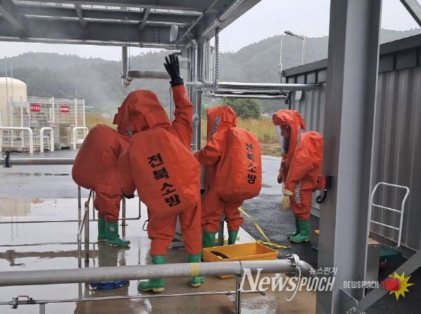 뉴스펀치 김길룡 기자 | 전북특별자치도소방본부은 2025년 4분기 호남권역 지진 대비 화학사고 통합대응훈련을 10월 15일 호남119특수구조대(전남 화순군 이양면 학포로 327)에서 실시했다고 밝혔다.
