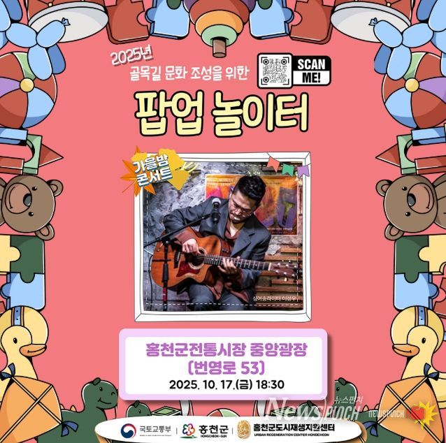 뉴스펀치 김길룡 기자 | 홍천군은 오는 10월 17일 오후 6시 30분, 홍천 전통시장 중앙광장에서 가을의 정취와 음악이 어우러지는‘가을밤 콘서트’를 개최한다.
