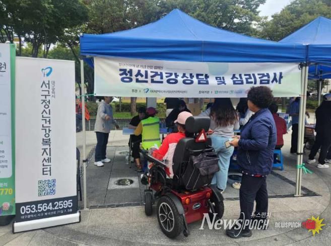 뉴스펀치 조평훈 기자 | 대구 서구보건소는 세계 정신건강의 날(10월 10일)을 기념해 10월 15일 평리공원에서 정신건강 인식 개선을 위한 ‘서구 연합 정신건강 캠페인’을 진행했다.