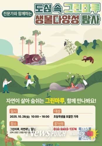 뉴스펀치 정홍균 기자 | 전북 고창군이 오는 26일 고창그린마루·자연마당 일원에서 ‘도심 속 그린마루 생물다양성 탐사대’ 참가자를 모집한다고 16일 밝혔다.