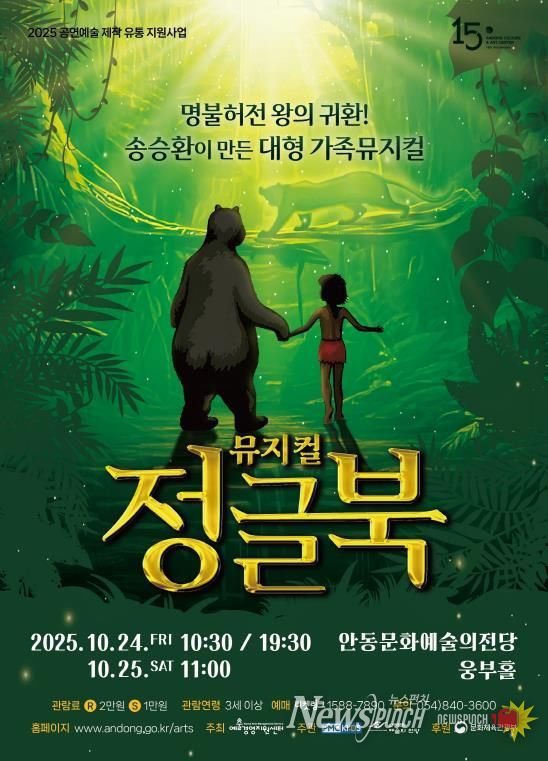 뉴스펀치 김길룡 기자 | 안동문화예술의전당은 예술경영지원센터가 주최하는 2025 공연예술 지역 유통사업의 일환으로 ‘가족뮤지컬 정글북’을 오는 10월 24일 10시 30분과 19시 30분, 25일 11시 3회 웅부홀에 올린다.