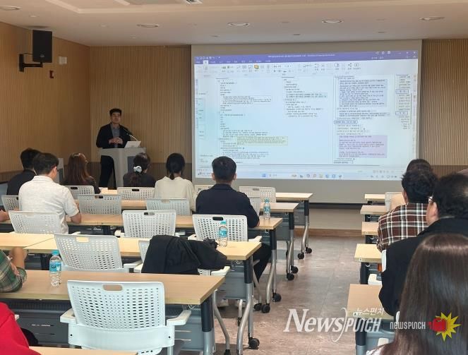 이날 교육은 지방계약 예규 등 복잡한 계약 관련 법률들에 대한 전반적인 이해와 Thinkwise(업무협업도구)를 활용한 계약체계도, 수의계약, e-호조 계약내용 등재 등 계약 업무에 필요한 실무적인 내용 위주로 진행됐다.