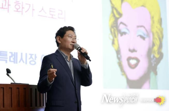 이상일 시장은 이날 시민 300여 명을 대상으로 '1억 달러 이상의 초고가 그림들과 화가 스토리'를 주제로 한 강연을 했다.