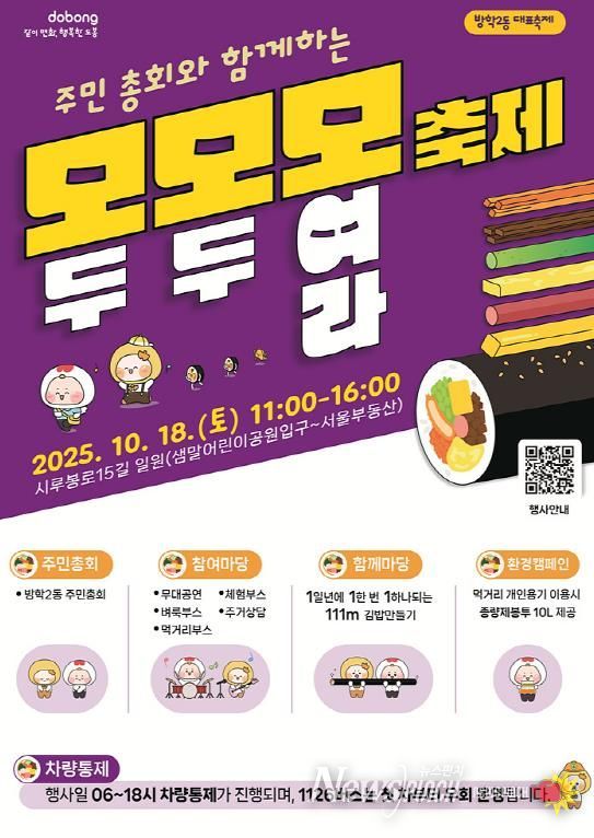 뉴스펀치 김완규 기자 | 서울 도봉구 방학2동이 10월 18일 시루봉로15길 일원(샘말어린이공원입구~서울부동산)에서 ‘2025년 제6회 모모모 축제’를 개최한다.