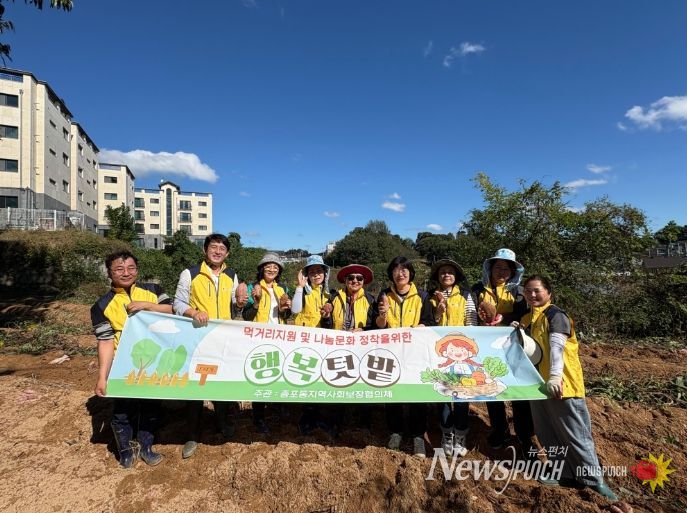 뉴스펀치 김길룡 기자 | 이천시 증포동 지역사회보장협의체는 지난 10월 15일, 증포동 휴경지 텃밭에서 취약계층을 위한 ‘행복텃밭’에서 고구마 캐기를 했다.