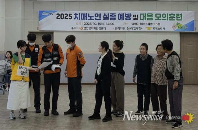뉴스펀치 박상훈 기자 | 영암군보건소가 15일 치매안심센터에서 주민·경찰·소방관 등 50여 명이 참석한 가운데 ‘치매 노인 실종 예방 및 대응 모의훈련’을 실시했다.