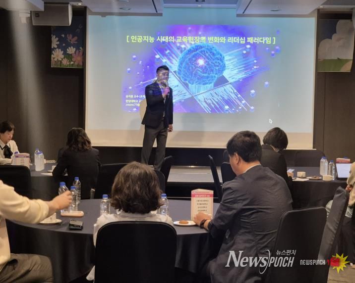 이 날 워크숍에서는 1부 송지훈 석학교수(한양대 교육공학과)를 초청하여 ‘AI 시대 교육의 변화와 리더십’을 주제로 빠르게 변화하는 교육환경 속에서 디지털 리터러시의 중요성과 교육의 방향성을 탐색하는 시간을 가졌다. 이번 특강은 학교 관리자의 미래 교육 리더십 역량을 강화하는 계기가 됐으며, 디지털 교육의 현장 적용 방안과 리더십 사례 공유를 통해 교(원)감의 궁금증을 해소했다.