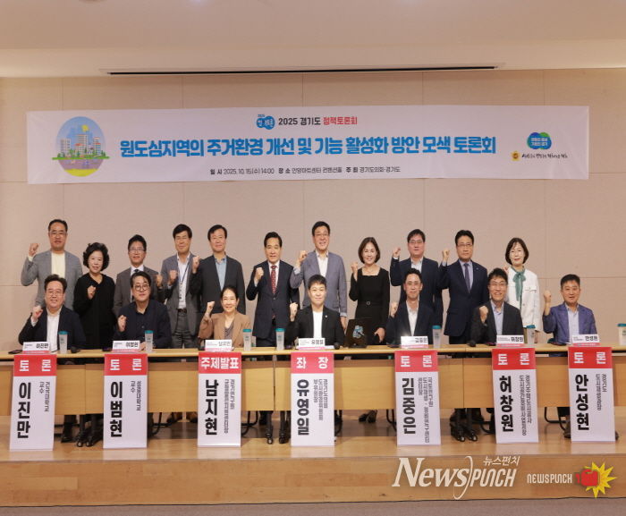 뉴스펀치 김길룡 기자 | 경기도의회 도시환경위원회 유영일 부위원장(국민의힘, 안양5)이 좌장을 맡은 '원도심지역의 주거환경 개선 및 기능 활성화 방안 모색 토론회'가 10월 15일 안양아트센터 컨벤션홀에서 개최됐다. 이번 토론회는 경기도와 경기도의회가 공동으로 주최하는 ‘2025 경기도 정책토론회’의 일환으로 개최됐다.