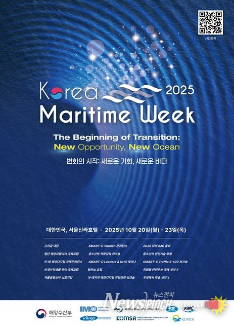 뉴스펀치 김길룡 기자 | 해양수산부는 10월 20일부터 23일까지 4일간 서울신라호텔에서 ‘2025 한국해사주간(2025 Korea Maritime Week)’을 개최한다고 밝혔다.
