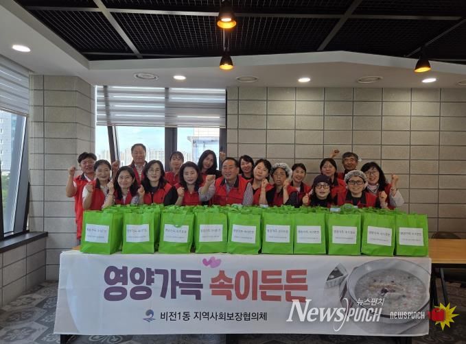 뉴스펀치 김길룡 기자 | 평택시 비전1동 지역사회보장협의체는 지난 15일 관내 홀로 계신 어르신 및 건강상의 이유로 죽이 필요한 취약계층에 영양 삼계죽과 나박김치를 정성스레 담아 전달하는 행사를 진행했다.