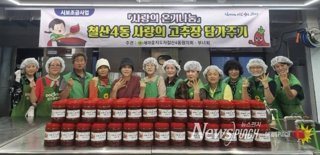 뉴스펀치 김길룡 기자 | 광명시 새마을지도자 철산4동 협의회와 새마을부녀회는 16일 광명시 채움부엌(공유부엌)에서 ‘사랑의 고추장 나눔 행사’를 진행했다.