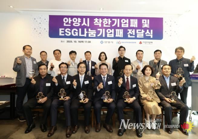뉴스펀치 김길룡 기자 | 안양시는 16일 오전 11시 30분 관내 음식점에서 지역사회와 이웃을 위해 나눔을 실천한 14개 기업을 대상으로 간담회와 함께 ‘착한기업’ 및 ‘이에스지(ESG)나눔기업’ 감사패 전달식을 가졌다.