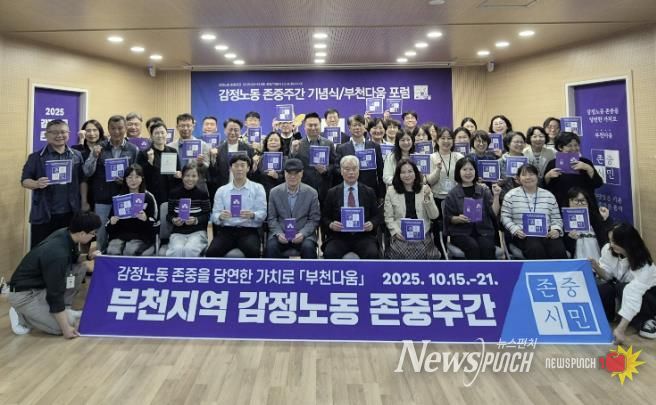 뉴스펀치 김길룡 기자 | 부천시 일쉼지원센터는 지난 14일, 감정노동 존중 주간 부천다움 포럼과 기념식을 성공적으로 개최했다. 이번 행사는 ‘감정노동자 보호법’(산업안전보건법 제41조) 시행 7주년을 맞아, 감정노동 존중을 당연한 가치로 확산하기 위해 부천시 일쉼지원센터와 부천상공회의소, 한국노총 부천김포지역지부가 공동으로 추진했다.