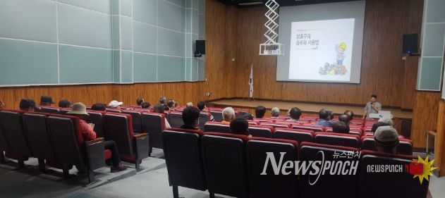 뉴스펀치 김길룡 기자 | 고성군은 10월 15일 고성군 농업기술센터 친환경농업연구소 강당에서 녹지공원과 기간제근로자 30여 명을 대상으로 보호구 착용 및 안전수칙 준수를 철저히 하기 위한 교육을 실시했다.