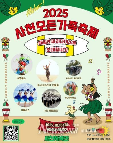 사천시가 주최하고 사천시가족센터가 주관하는 ‘2025 사천모든가족축제’에 대한 자세한 사항은 여성가족과 또는 사천시가족센터로 문의하면 된다.