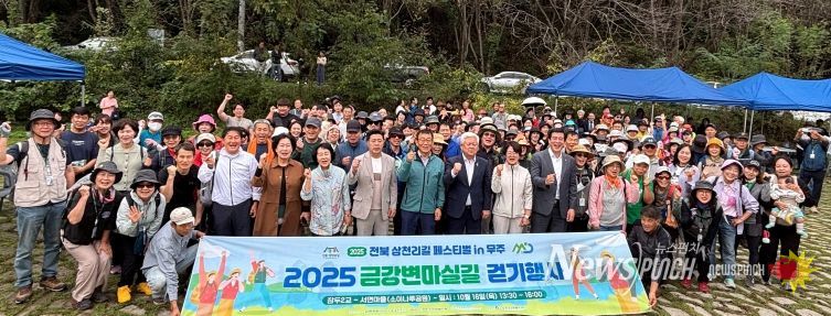 뉴스펀치 김길룡 기자 | 전북특별자치도와 무주군이 공동 주최한 ‘2025 전북 삼천리길 페스티벌 in 무주 – 아름다운 금강변 마실길 걷기’ 행사가 16일 무주군 부남면 금강변 일원에서 200여 명이 참여한 가운데 성황리에 열렸다.